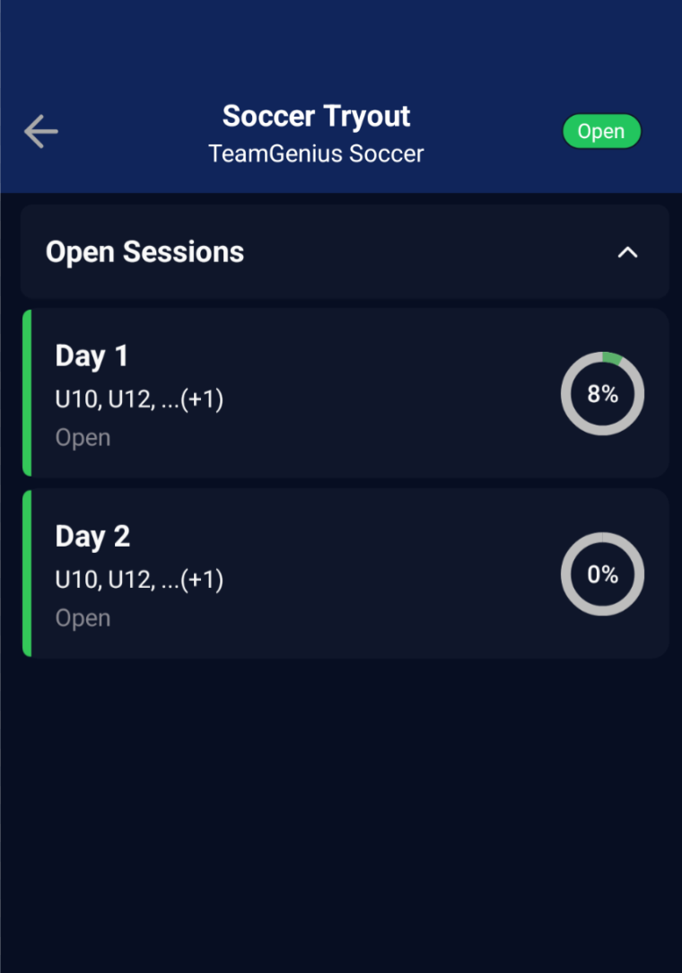 If you see the list of available Evaluation Sessions, confirm you are selecting the correct one based on the directions given to you by your organization. You will only see the sessions open at the time of entering the app. Click on the session name to enter it for scoring.