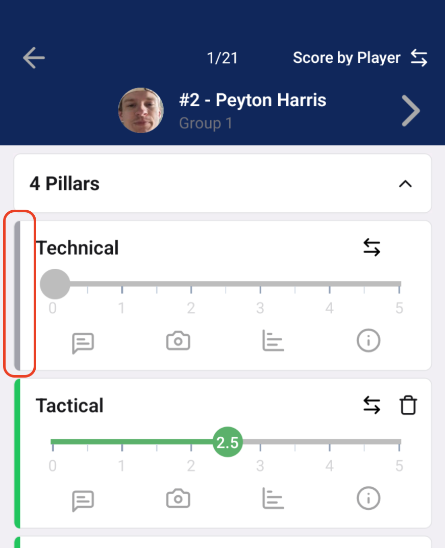 *Note - Deleting a score is not the same as resetting the score to zero (0) on the slider scale. A zero is a legitimate score in the system. If you do not need to score the athlete for the criteria, you will want to delete the score per the steps above so they are not negatively affected in the overall ratings.